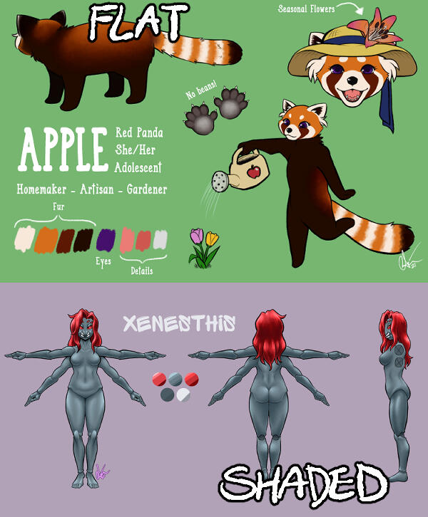The base price includes 2 full-body poses (eg. front and back) and 2 detail shots (eg. face markings, special anatomy, important accessories), a color palette, and a simple backgroundFlat color - $150+